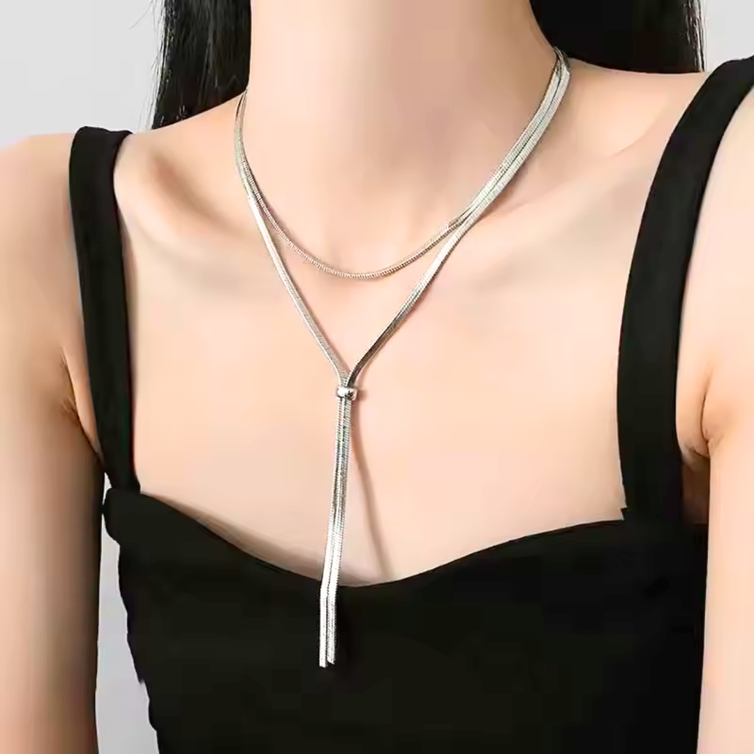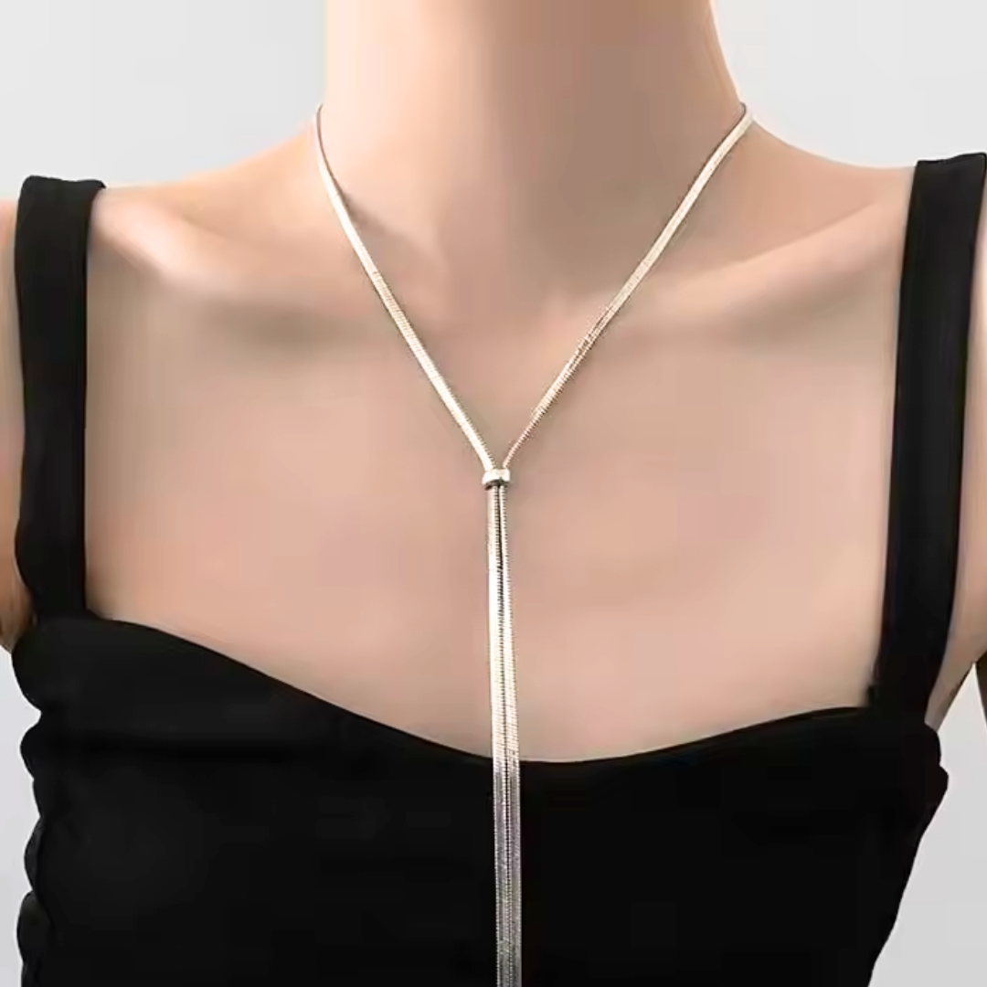 Die Lange Silber Halskette Anastasia ist eine wahre Hommage an moderne Eleganz und zeitlosen Charme.