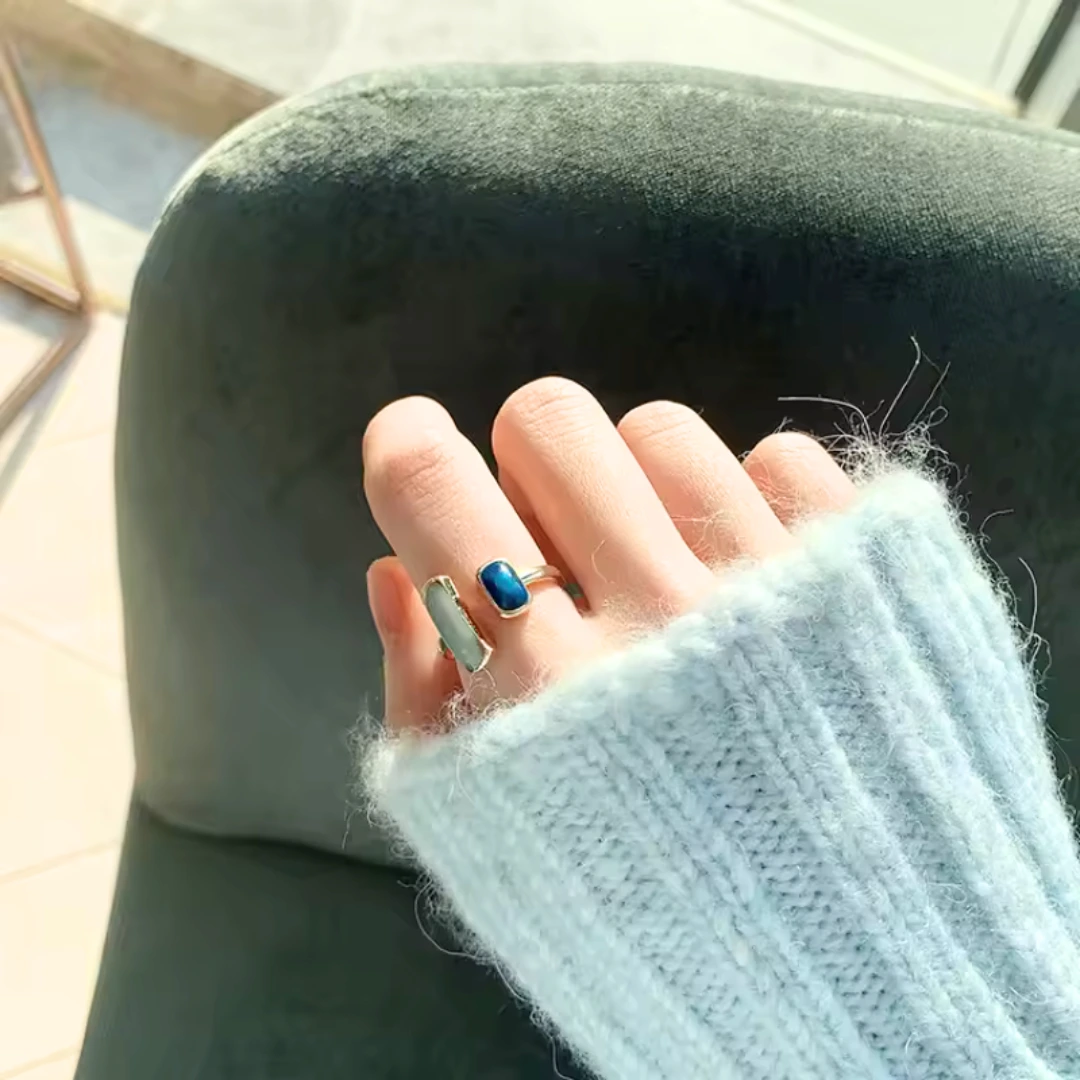 Mit seinem prächtigen blauen Stein erinnert er an die tiefen Nuancen der Ozeane und verleiht Ihrer Hand eine geheimnisvolle und elegante Ausstrahlung.