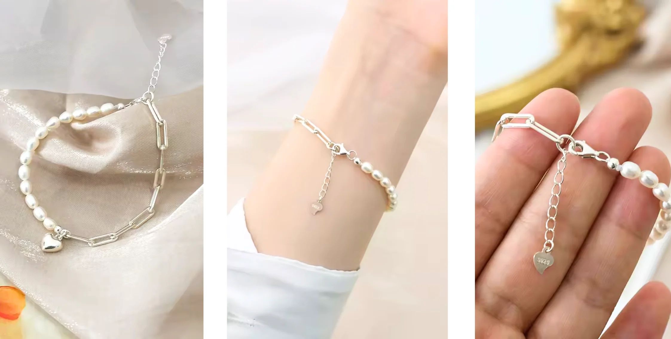 • Design: Wunderschön arrangierte Silberperlen für einen klassischen und eleganten Look.